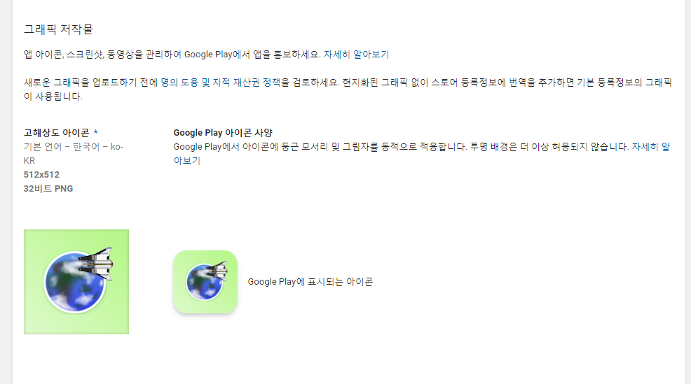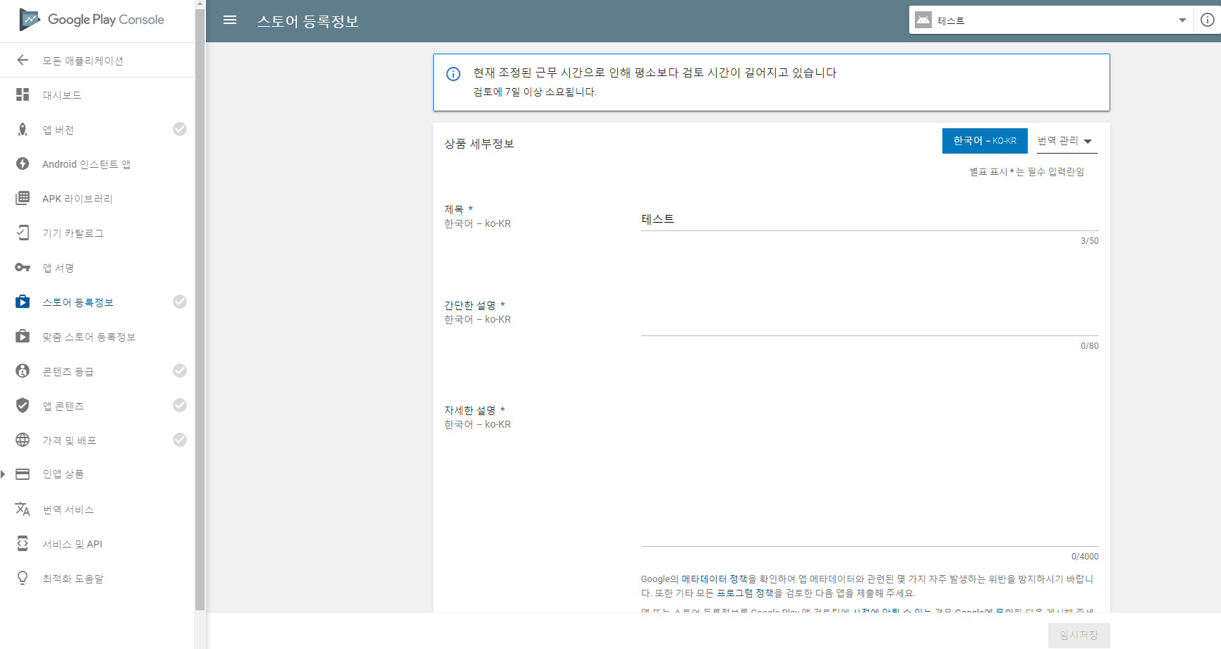 처음 보여지는 부분은 스토어 등록정보입니다.