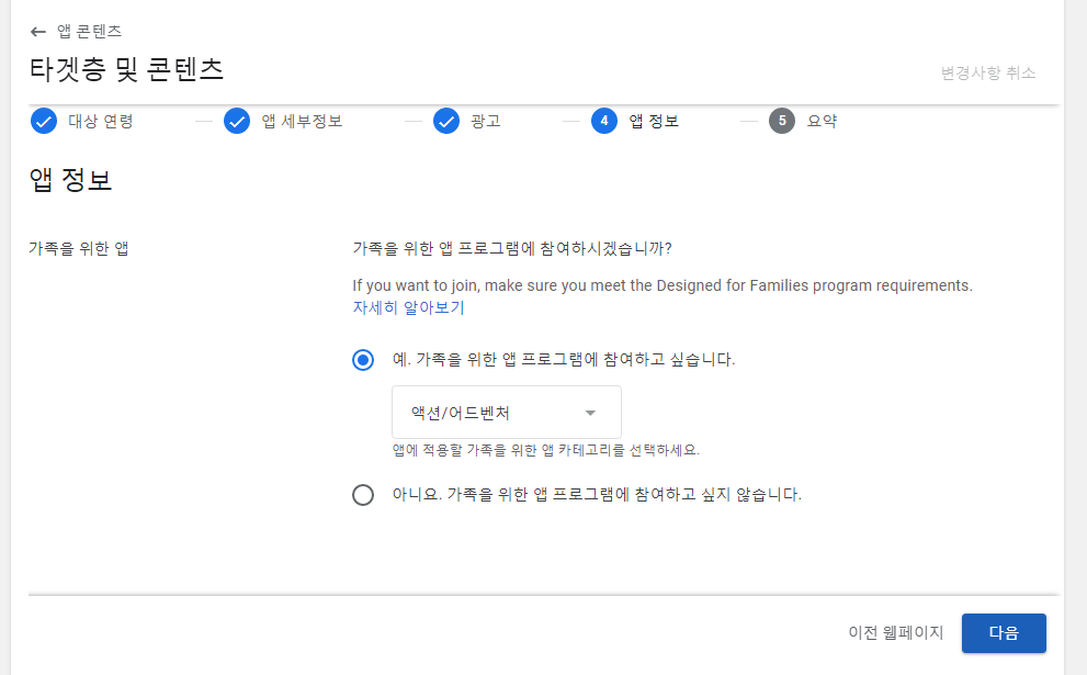 앱을 배포하기 전에 콘텐츠 등급을 수정할 수 있으므로, 부담없이 진행합니다.
