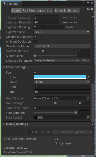 유니티에서 안개를 만드는 법은 다양하다. Rendering, Particle Systems 등이 있다. 본 글에서는 유니티에서 제공하는 Rendering을 사용하여 기본적인 안개를 생성하는 방법에 대하여 다룬다.