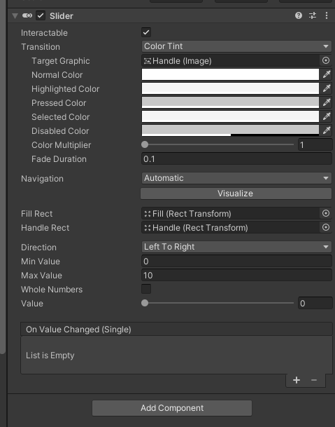 Slider : 막대 형태로 값을 표시하는 UI 요소이다.