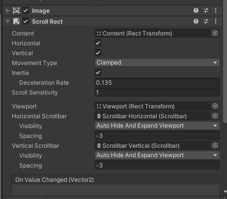 OnScrollValueChanged() 함수를 만들고, 스크롤바의 onValueChanged의 리스너로 등록한다.