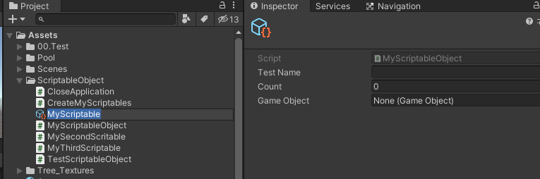 스크립터블 오브젝트를 상속받아 필요한 스크립터블 오브젝트를 정의한다.