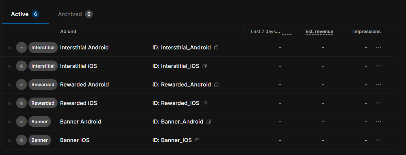 - Unity Ads Monetization → Ad units