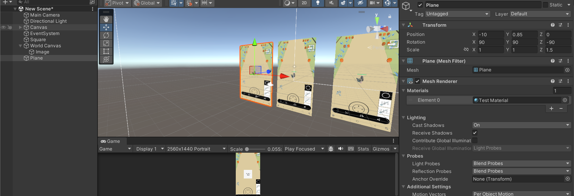 - Plane Game Object를 생성한다.
