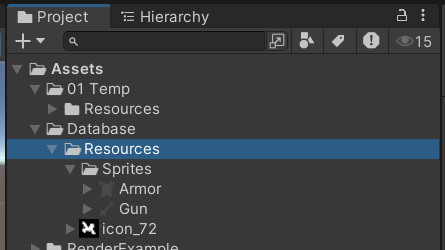 위의 이미지를 기준으로 "Armor"의 위치는 Resources/Sprites이다.