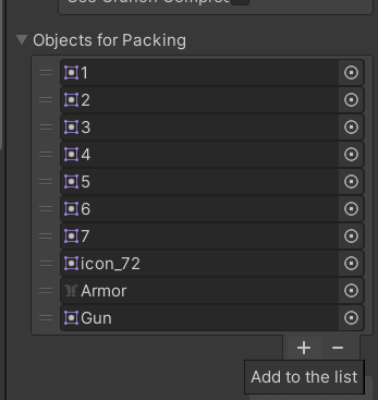 Objects for Packing → + 버튼선택 → Sprite 선택
